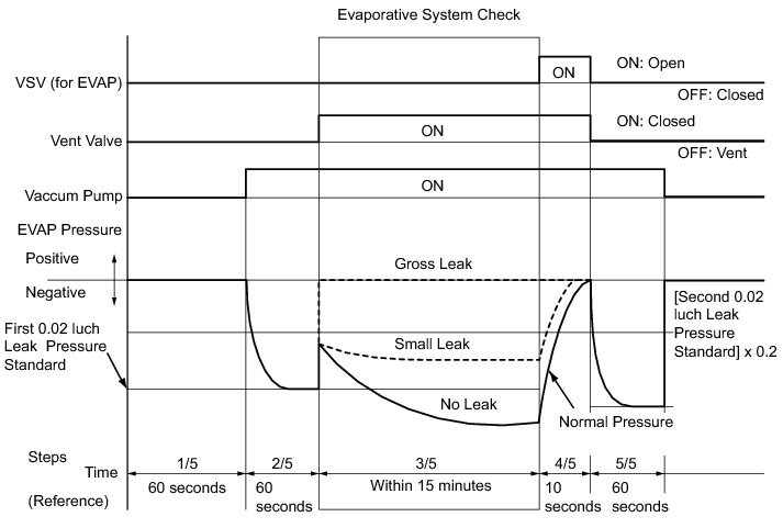 * In the Evaporative System Check (Automatic Mode), the series of 5 Evaporative System Check step are performed automatically. It takes a maximum of approximately 18 minutes.