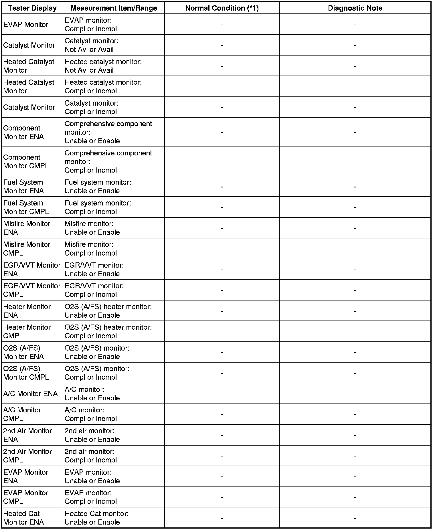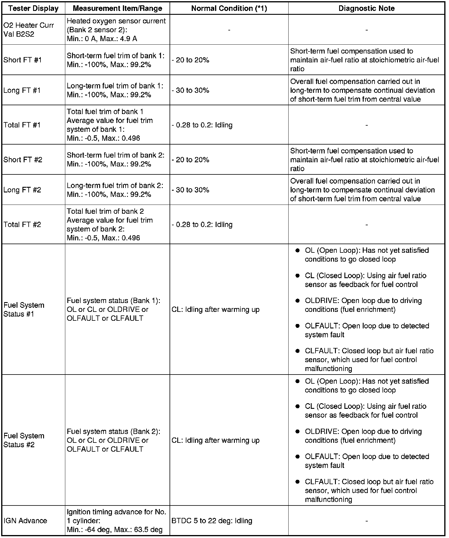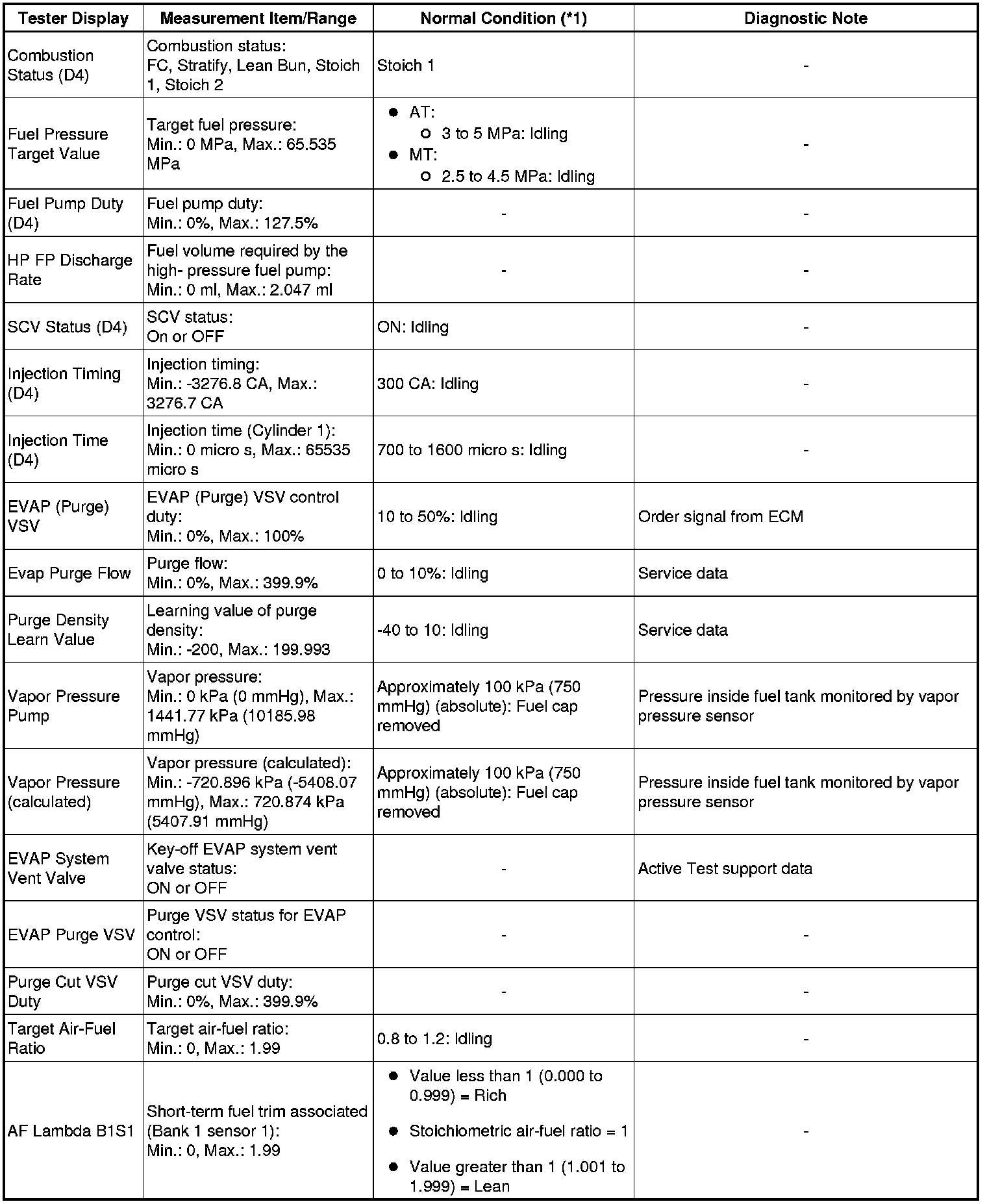 * *1: If no idling conditions are specified, the transmission gear selector lever should be in the N or P position, and the A/C switch and all accessory switches should be OFF.