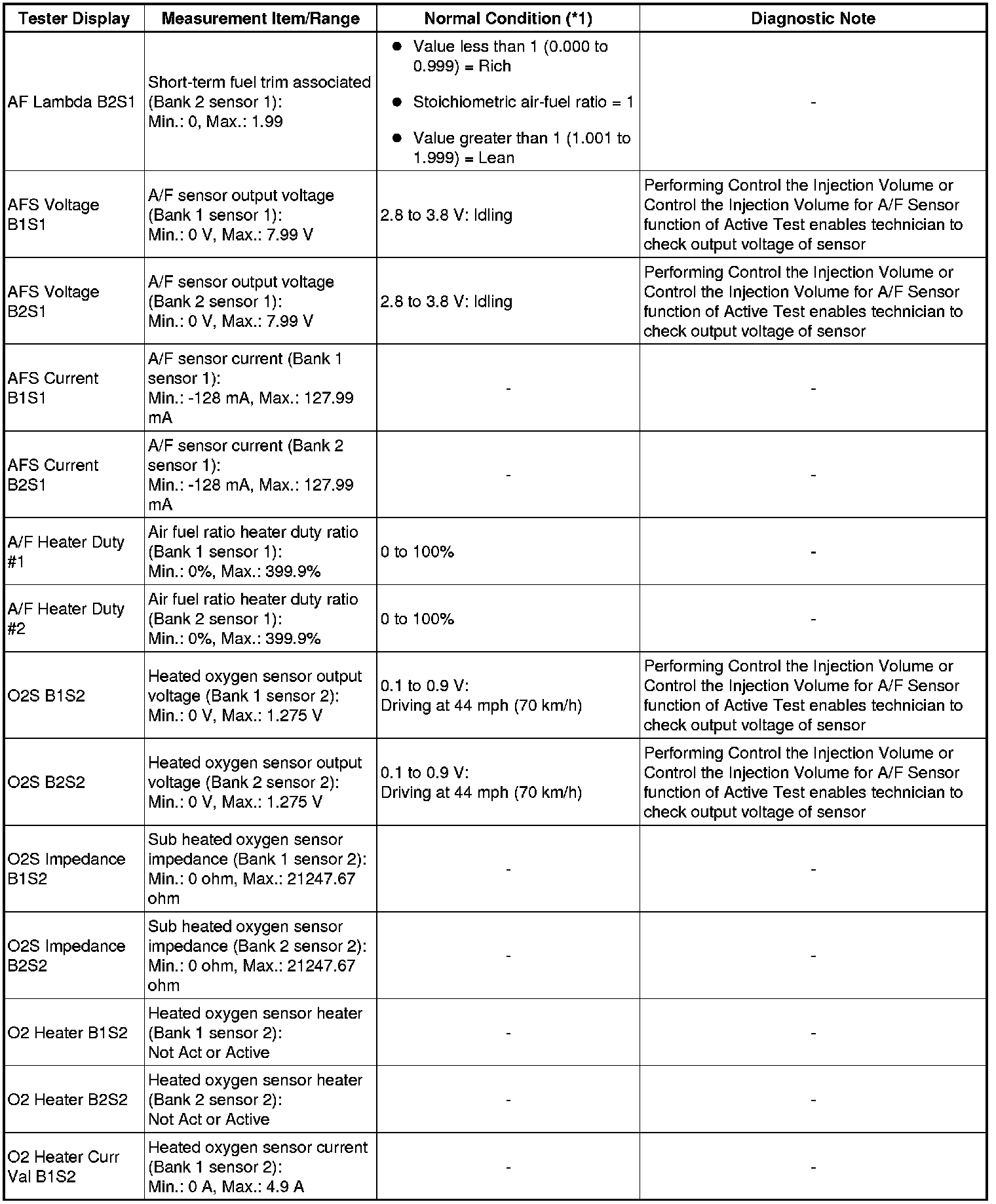 (e) Perform an Active Test by referring to the table below.