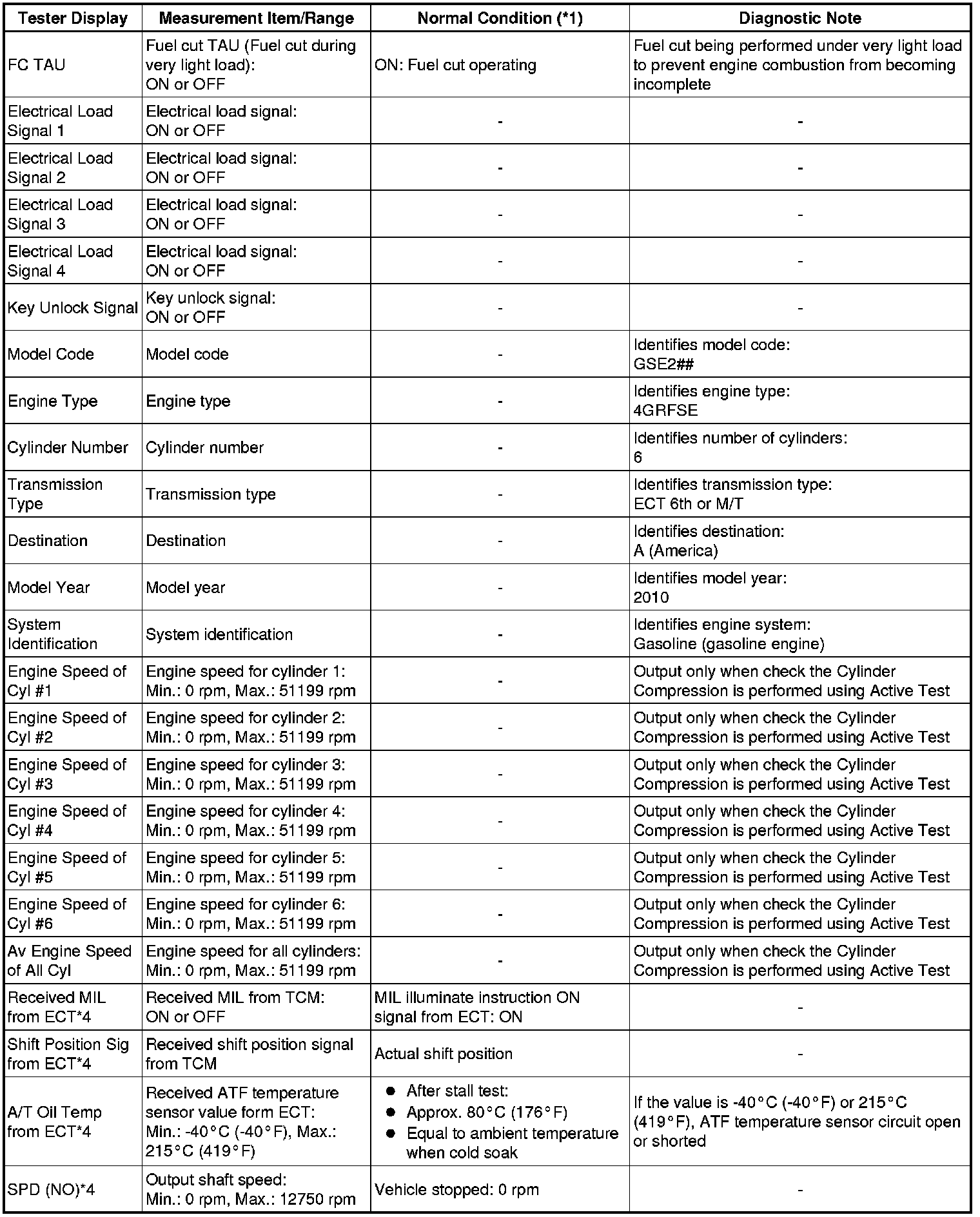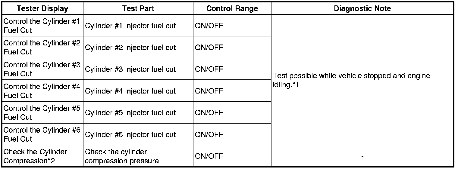 *2: When performing the Active Test item "Check the Cylinder Compression" and then cranking the engine, the ECM stops the fuel injection and ignition, and measures the engine speed for each cylinder.