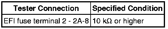 (1) Remove the EFI fuse. Using an ohmmeter, measure the resistance between the terminals.