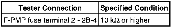 (1) Remove the F/PMP fuse. Using an ohmmeter, measure the resistance between the terminals.
