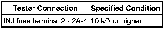 (1) Remove the INJ fuse. Using an ohmmeter, measure the resistance between the terminals.