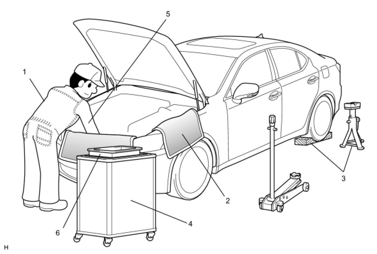 (1) Care must be taken when jacking up and supporting the vehicle. Be sure to lift and support the vehicle at the proper locations.