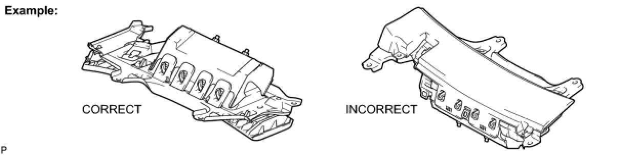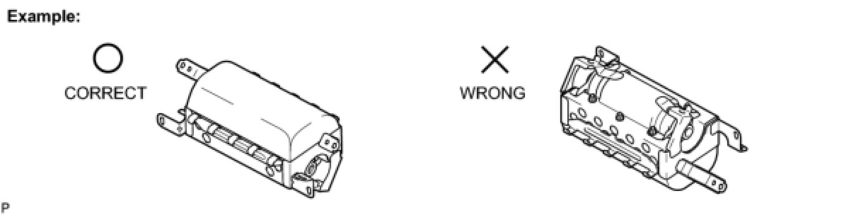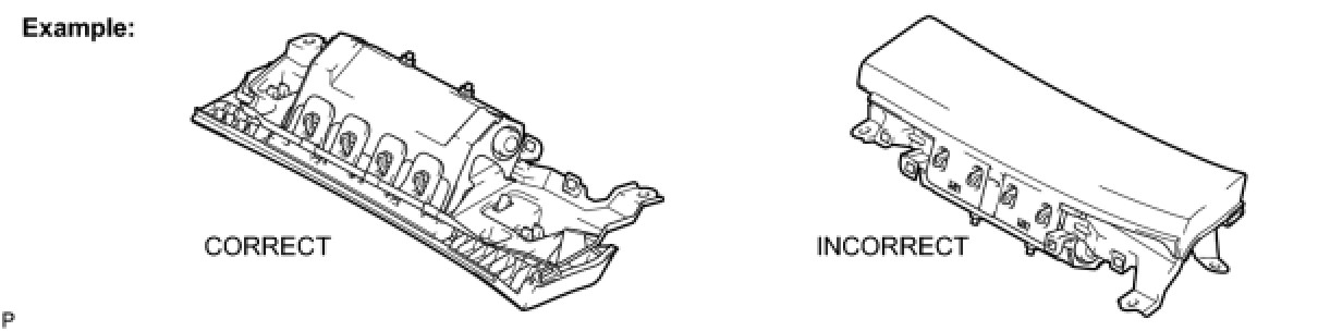 (1) Always place a removed or new knee airbag assembly with the airbag inflation direction facing upward. Placing the airbag assembly with the airbag inflation direction facing downward could cause a serious accident if the airbag inflates.