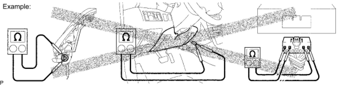 (1) Never measure the resistance of the seat outer belt. This may cause the pretensioner of the seat belt to activate, which could cause serious injury.
