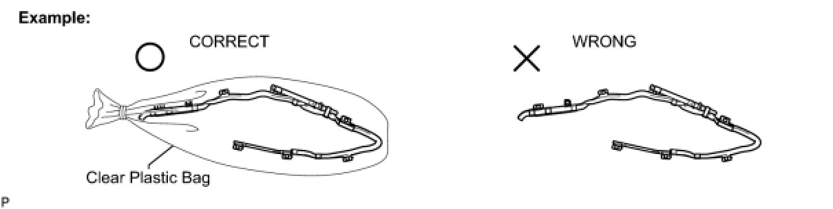 (1) Always place a removed or new curtain shield airbag assembly in a clear plastic bag, and keep it in a safe place.