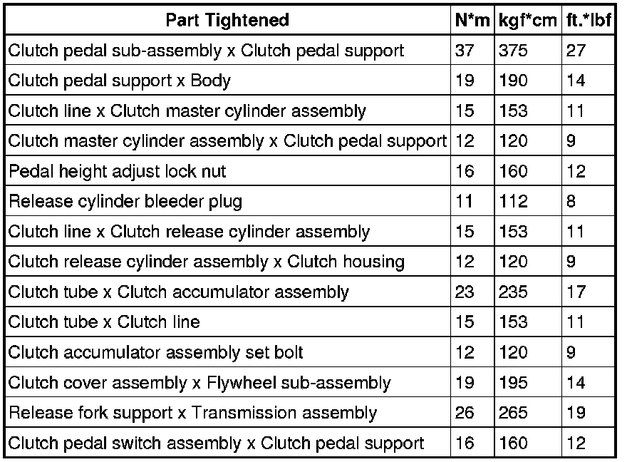 SERVICE SPECIFICATIONS: CLUTCH: TORQUE SPECIFICATIONS