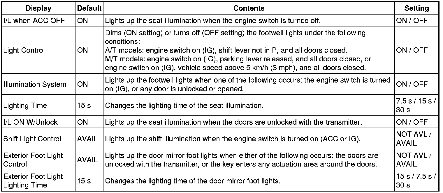* *1: This function is linked with the power window key-linked function. If the power window key-linked function is set to OFF, the sliding roof key-linked function will not operate even when it is set to ON.