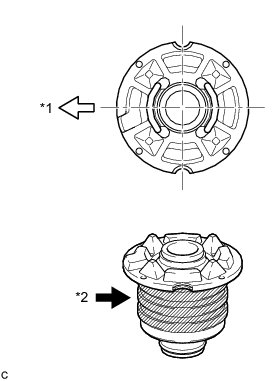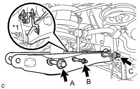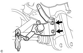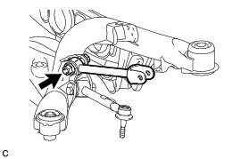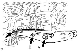 (a) Temporarily install the rear No. 2 suspension arm assembly LH to the rear suspension member sub-assembly with the bolt, nut (C) and washer.