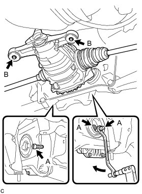 (c) Using a straight hexagon and a wrench, temporarily install the rear differential carrier assembly to the suspension member assembly with 3 new bolts (A) as shown in the illustration.