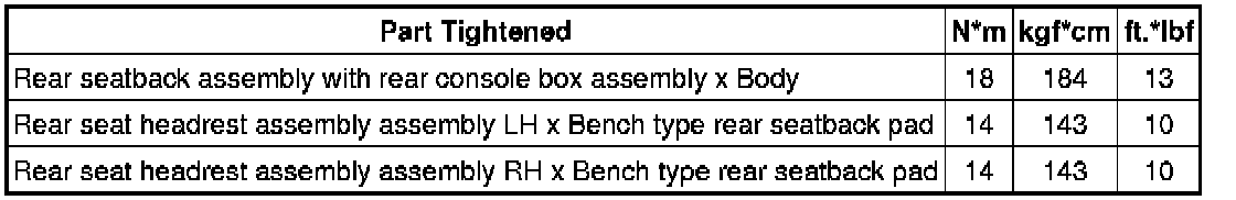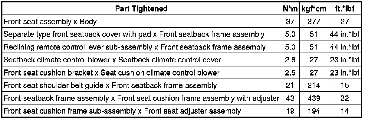 Seat: Torque Specifications