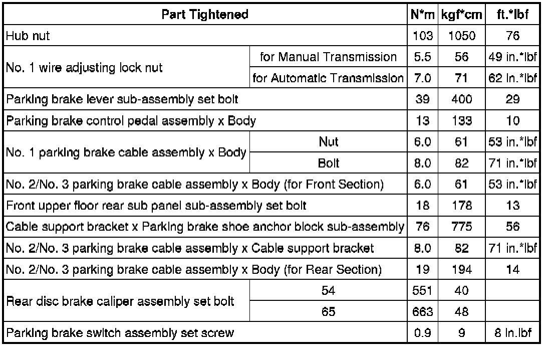 SPECIFICATIONS: PARKING BRAKE: TORQUE SPECIFICATIONS