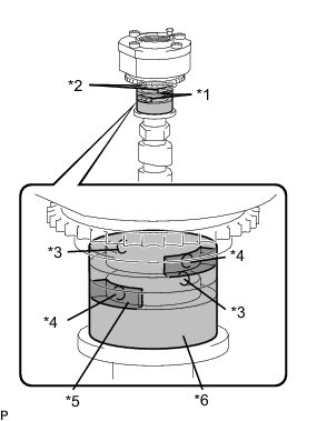 Be sure to release the air pressure from the advance side path first. If the air pressure of the retard side path is released first, the camshaft timing exhaust gear assembly may abruptly shift in the advance direction and break the lock pin or other parts.