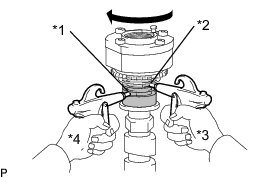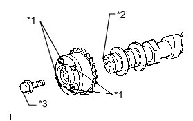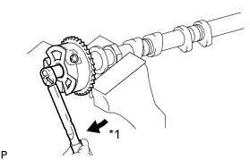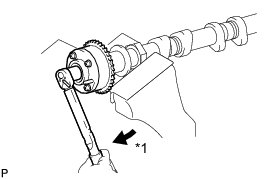 (1) Clamp the camshaft in a vise, and confirm that the camshaft timing gear assembly is locked.