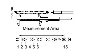 (b) Using a vernier caliper, measure the sprocket diameter with the chain.