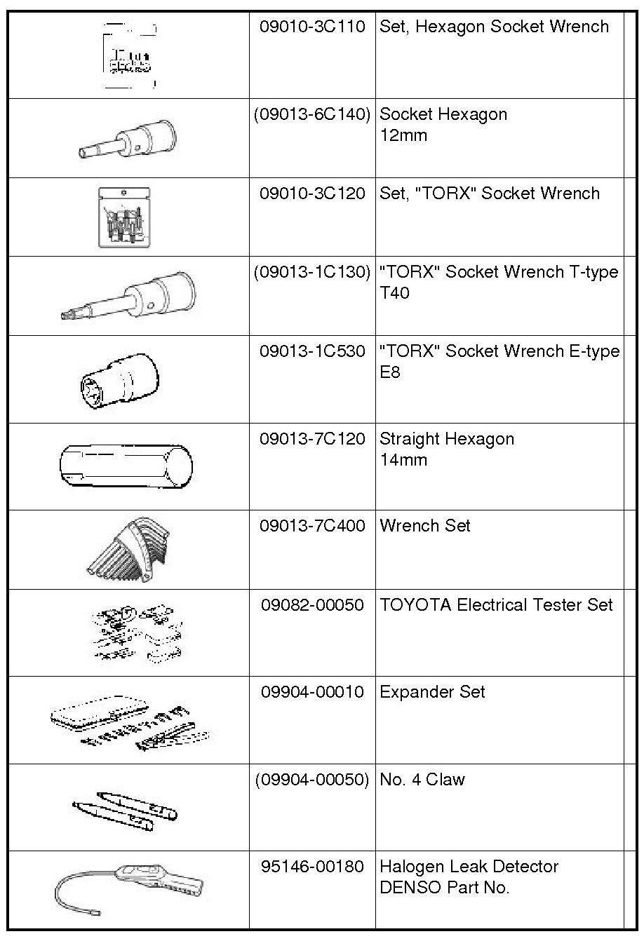 PREPARATION: HEATING / AIR CONDITIONING: RECOMMENDED TOOLS