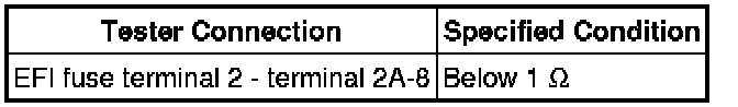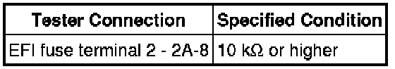 (1) Remove the EFI fuse. Using an ohmmeter, measure the resistance between the terminals.