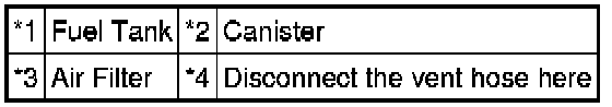 Disconnect the hose between the canister and fuel tank from the canister. Block the charcoal canister assembly side and conduct an inspection. In this way, the fuel tank can be excluded as an area suspected of causing fuel leaks.