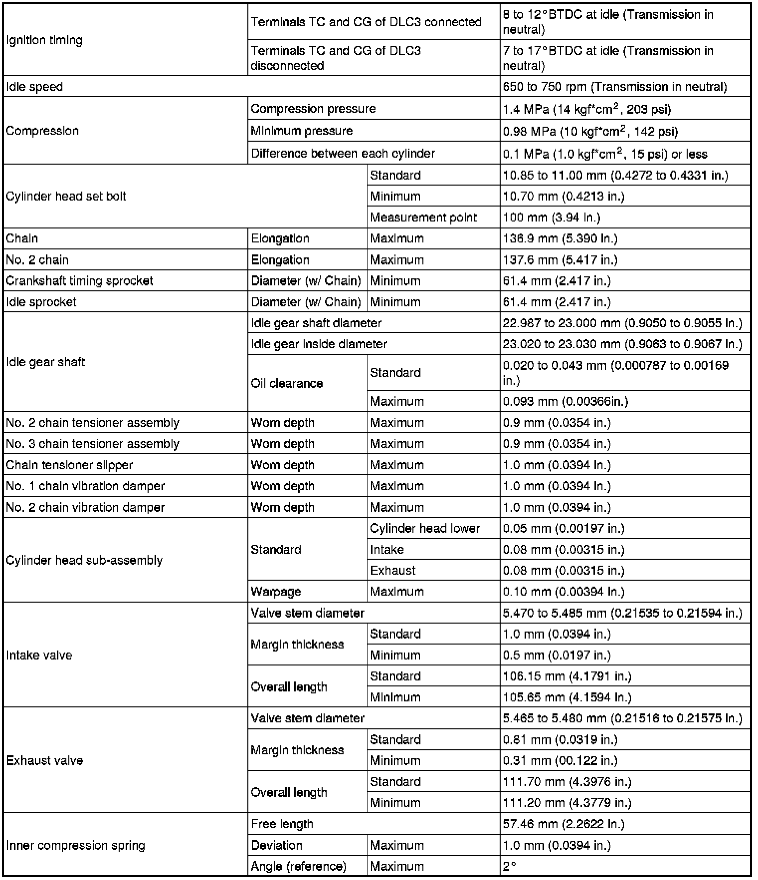 SPECIFICATIONS: 4GR-FSE ENGINE MECHANICAL: SERVICE DATA
