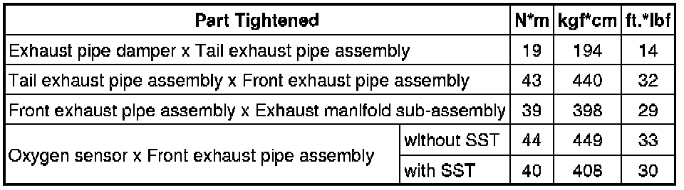 SPECIFICATIONS: 4GR-FSE INTAKE / EXHAUST: TORQUE SPECIFICATIONS