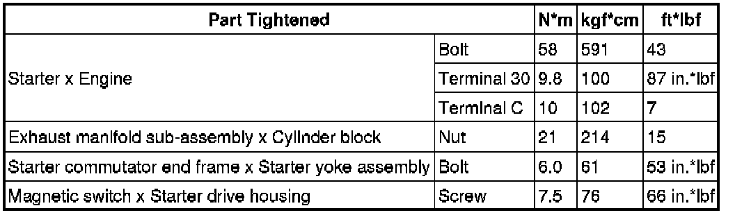 SPECIFICATIONS: 4GR-FSE STARTING: TORQUE SPECIFICATIONS