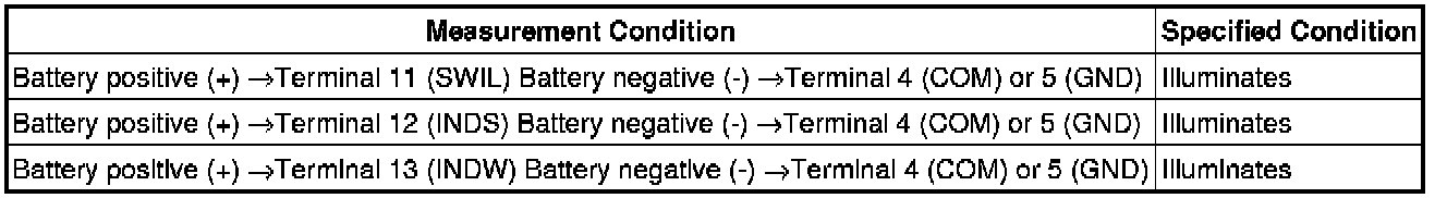 (c) Apply battery voltage between the terminals of the switch, and check the illumination condition of the switch.