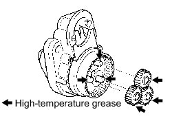 (a) Apply high-temperature grease to the planetary gears and pin parts of the planetary shaft, as shown in the illustration.