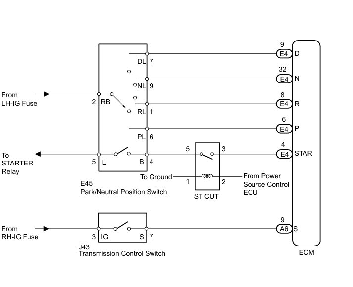 4. CHECK HARNESS AND CONNECTOR (PARK/NEUTRAL POSITION SWITCH - ECM)