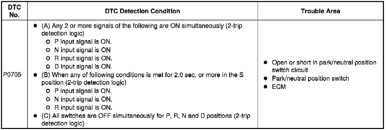 A960E AUTOMATIC TRANSMISSION / TRANSAXLE: AUTOMATIC TRANSMISSION SYSTEM: P0705: Transmission Range Sensor Circuit Malfunction (PRNDL Input)
