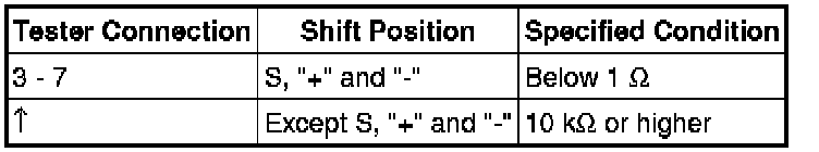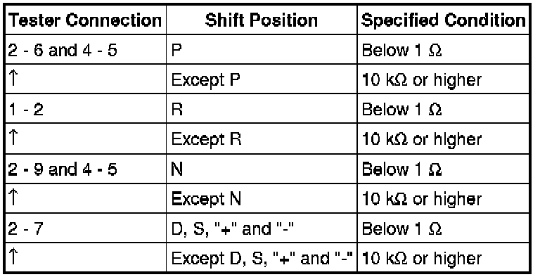(b) Measure resistance according to the value(s) in the table below when the shift lever is moved to each position.