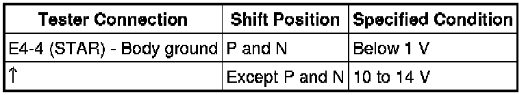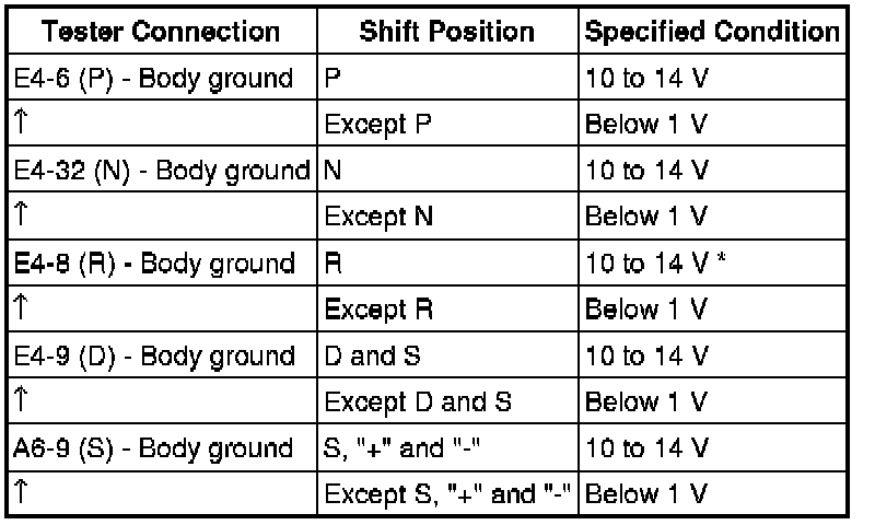 (b) Turn the engine switch on (IG) position, and measure the voltage according to the value(s) in the table below when the shift lever is moved to each position.