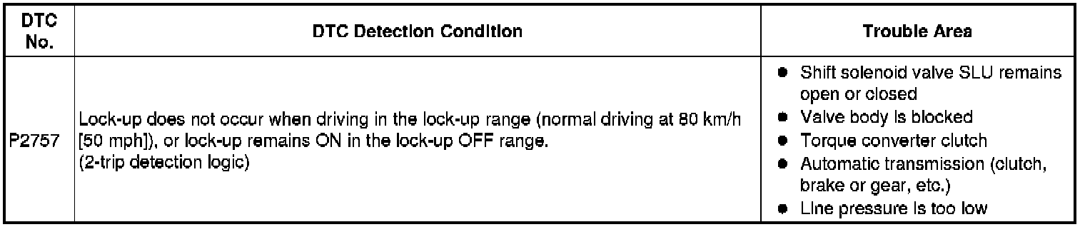 A760E AUTOMATIC TRANSMISSION / TRANSAXLE: AUTOMATIC TRANSMISSION SYSTEM: P2757: Torque Converter Clutch Pressure Control Solenoid Performance (Shift Solenoid Valve SLU)