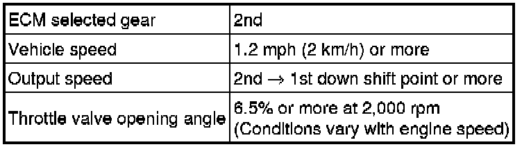 The ECM uses the signals from the throttle position sensor, Air-flow meter, turbine (input) speed sensor, output speed sensor and crankshaft position sensor to monitor the engagement condition of the lock-up clutch.