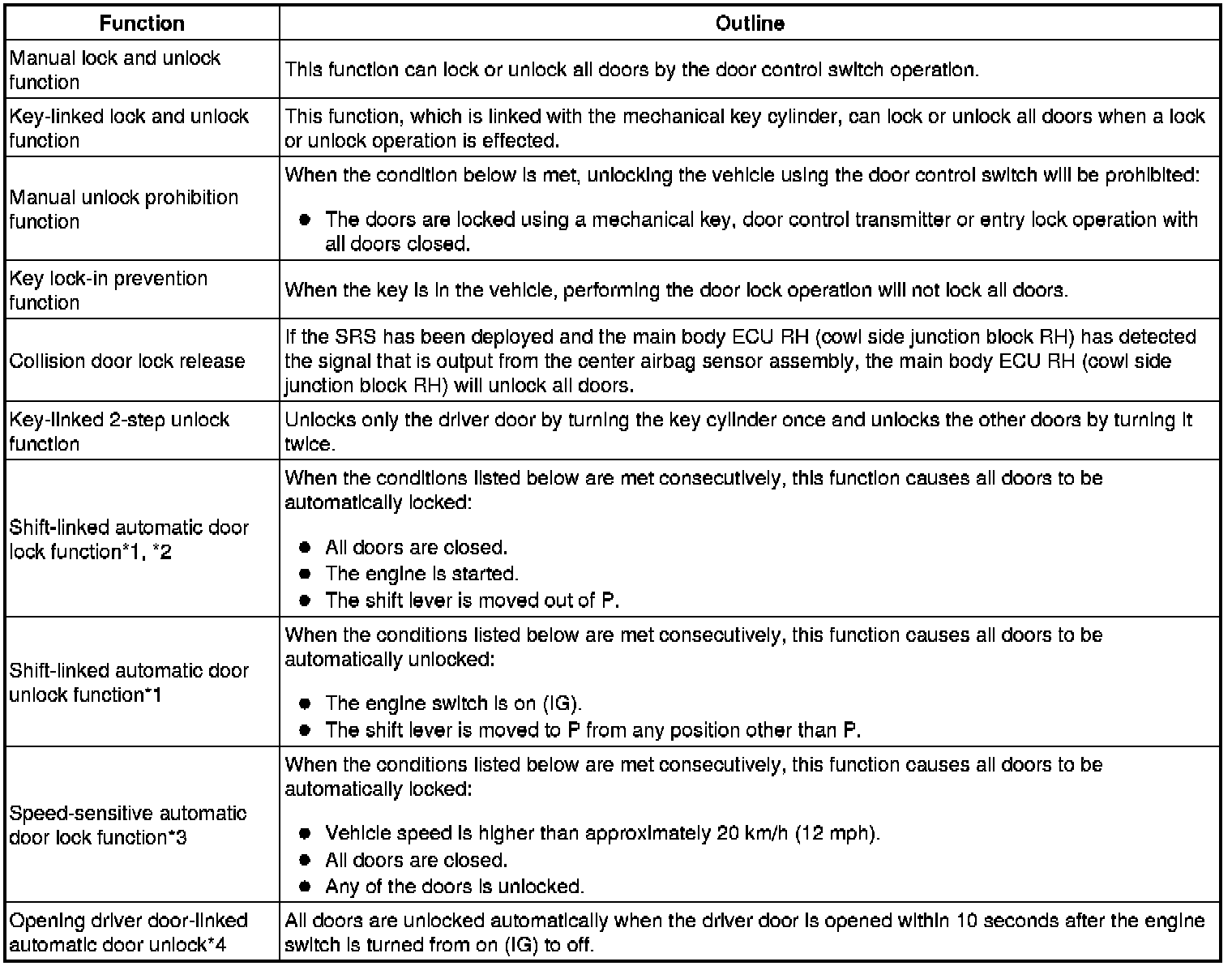 DOOR LOCK: POWER DOOR LOCK CONTROL SYSTEM: SYSTEM DESCRIPTION