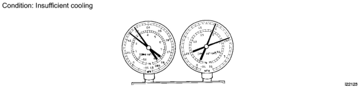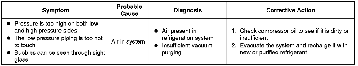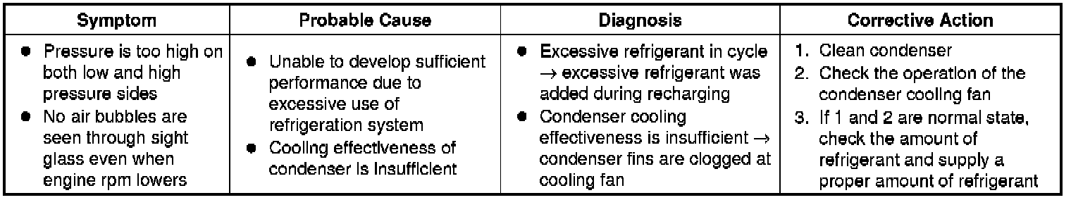 (6) Refrigerant is overcharged or cooling effectiveness of condenser is insufficient.