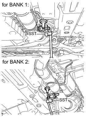 (c) Using the SST, remove the heated oxygen sensors from the exhaust pipe assembly.
