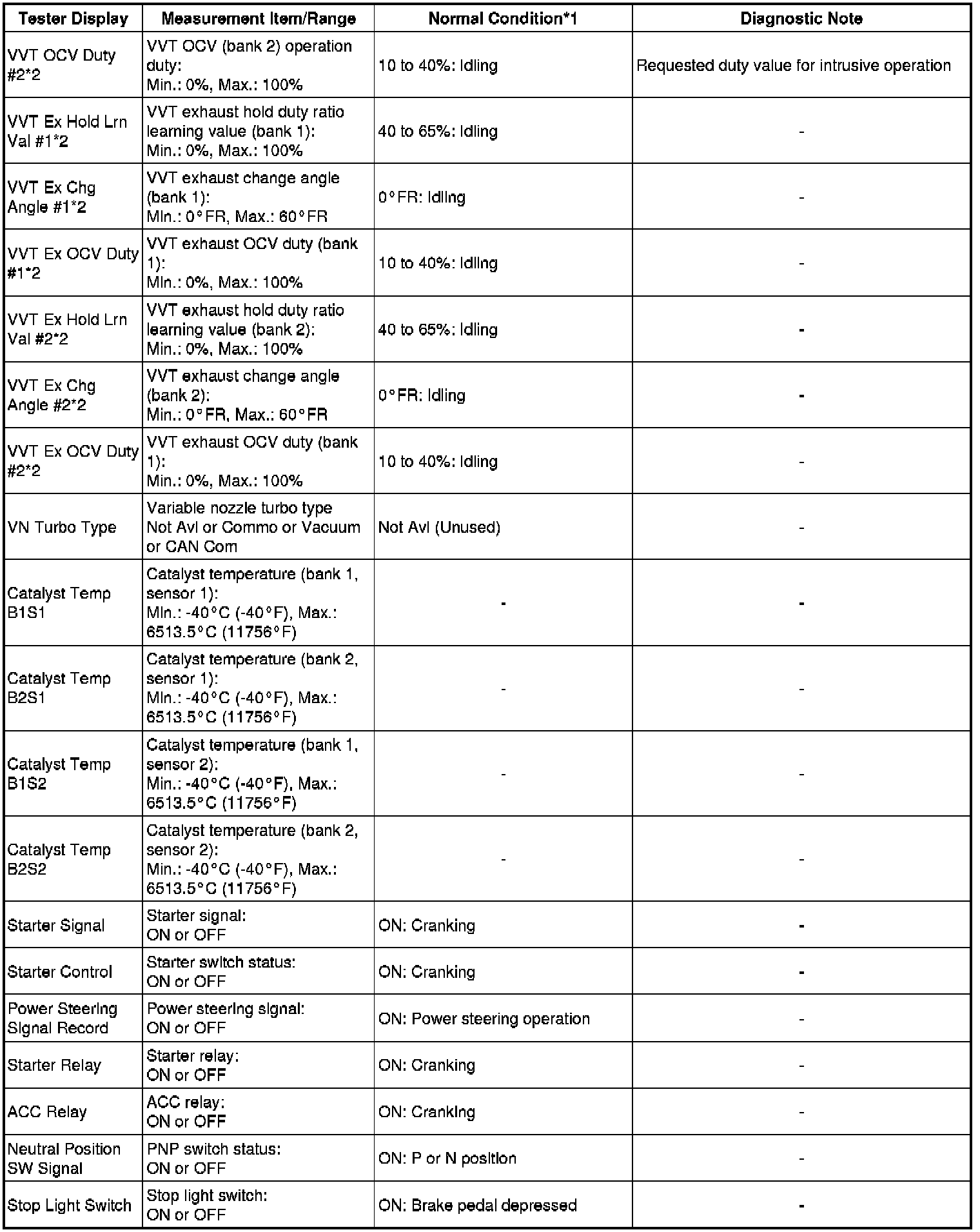 * *2: Data List values are only displayed when performing the following Active Test: Control the VVT System (Bank 1, 2), Control the VVT Linear (Bank 1, 2) For other Active Test, the Data List value will be 0.