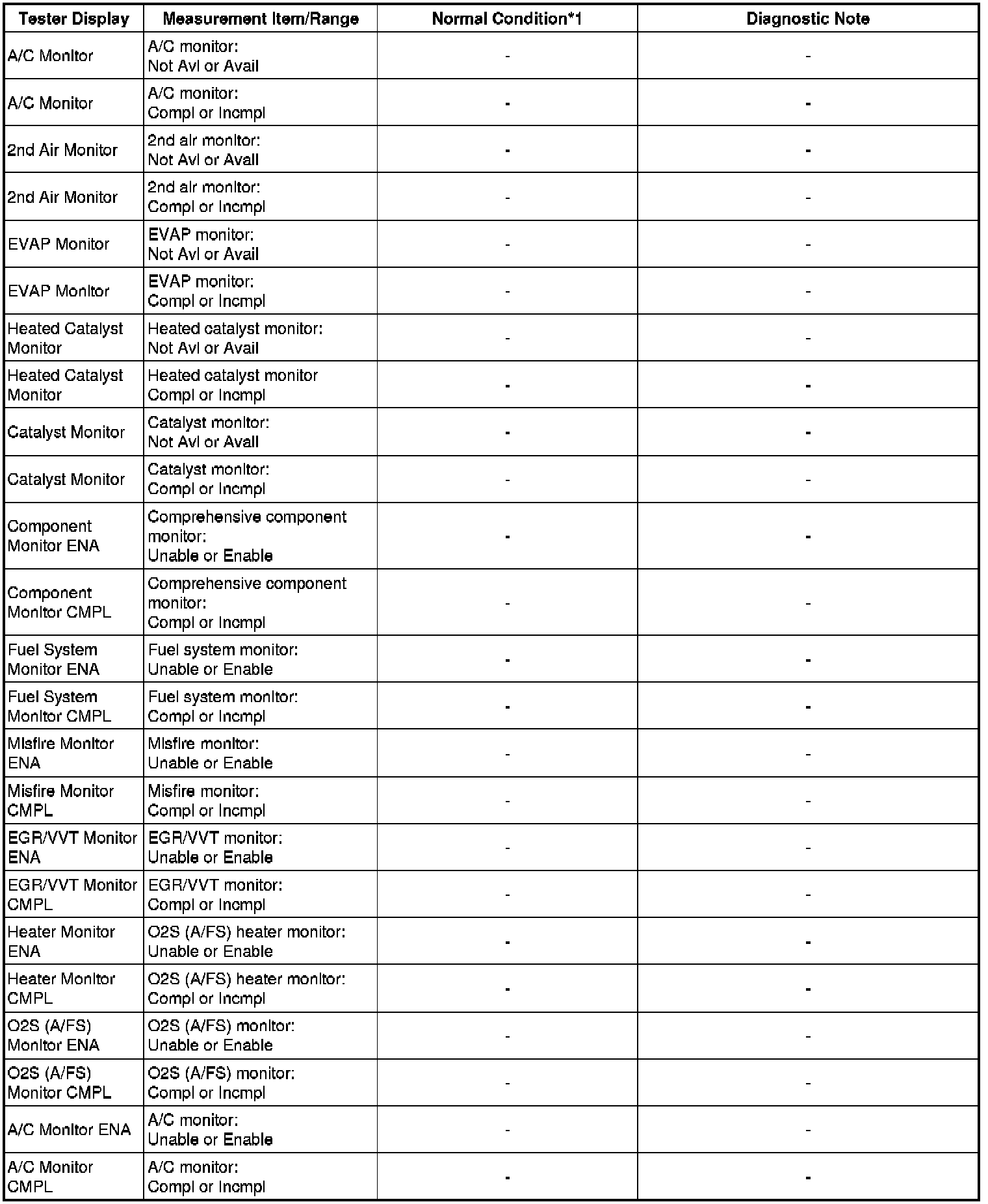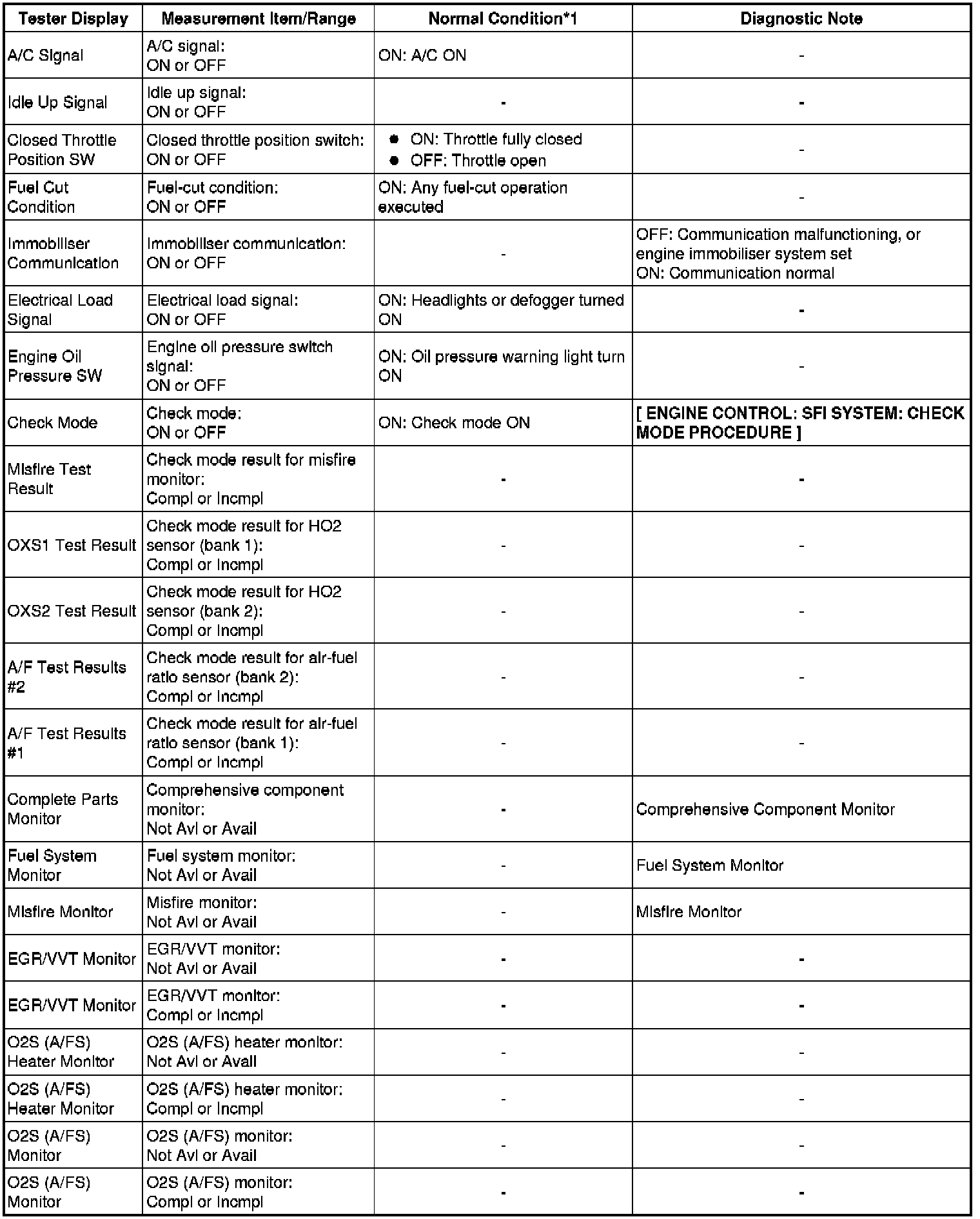 * *1: If no idling conditions are specified, the shift lever should be in N or P and the A/C switch and all accessory switches should be OFF.