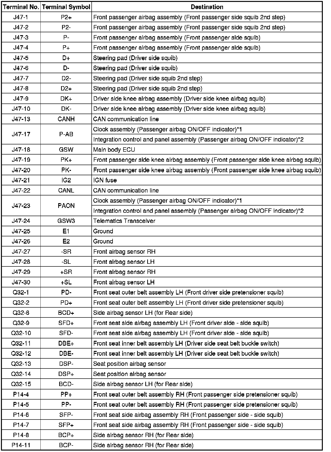 SUPPLEMENTAL RESTRAINT SYSTEMS: AIRBAG SYSTEM: TERMINALS OF ECU