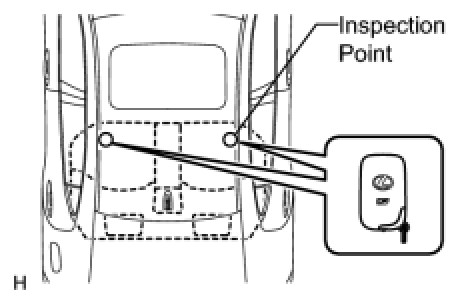 (d) Bring the electrical key transmitter near the outside electrical key oscillator (luggage compartment), and perform an entry luggage compartment door open function check.