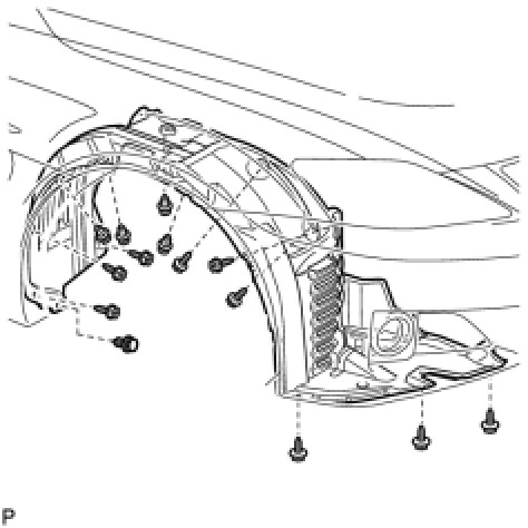(b) Remove the 5 clips, 9 screws and front fender liner RH.