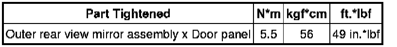 SPECIFICATIONS: MIRROR (EXT): TORQUE SPECIFICATIONS