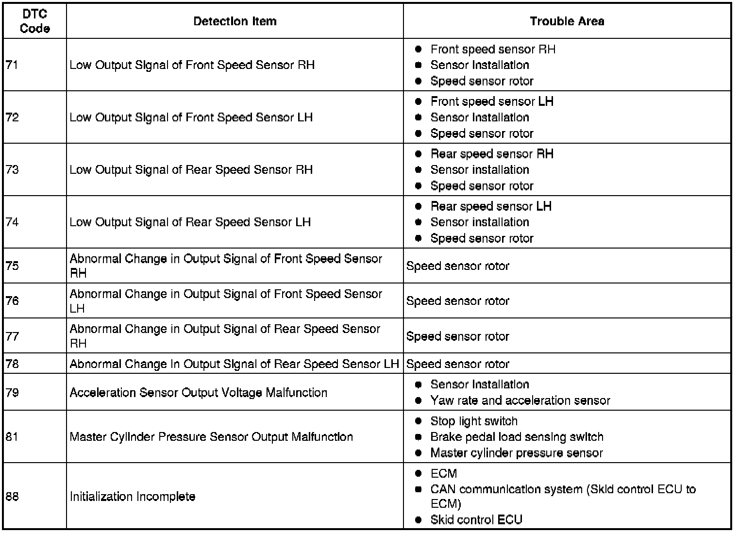 * After the ABS warning light goes off, if the vehicle speed exceeds 80 km/h (50 mph), a sensor check code will be stored again. Decelerate or stop the vehicle before the speed reaches 80 km/h (50 mph).
