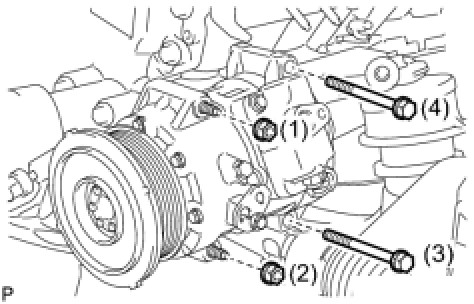 (c) Install the compressor and pulley with the 2 bolts and 2 nuts.