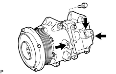 (b) Apply sufficient compressor oil to a new O-ring and the fitting surface of the compressor and pulley.