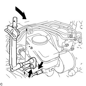 (a) Using a union nut wrench (10 mm), disconnect the 2 brake lines from the brake master cylinder sub-assembly.
