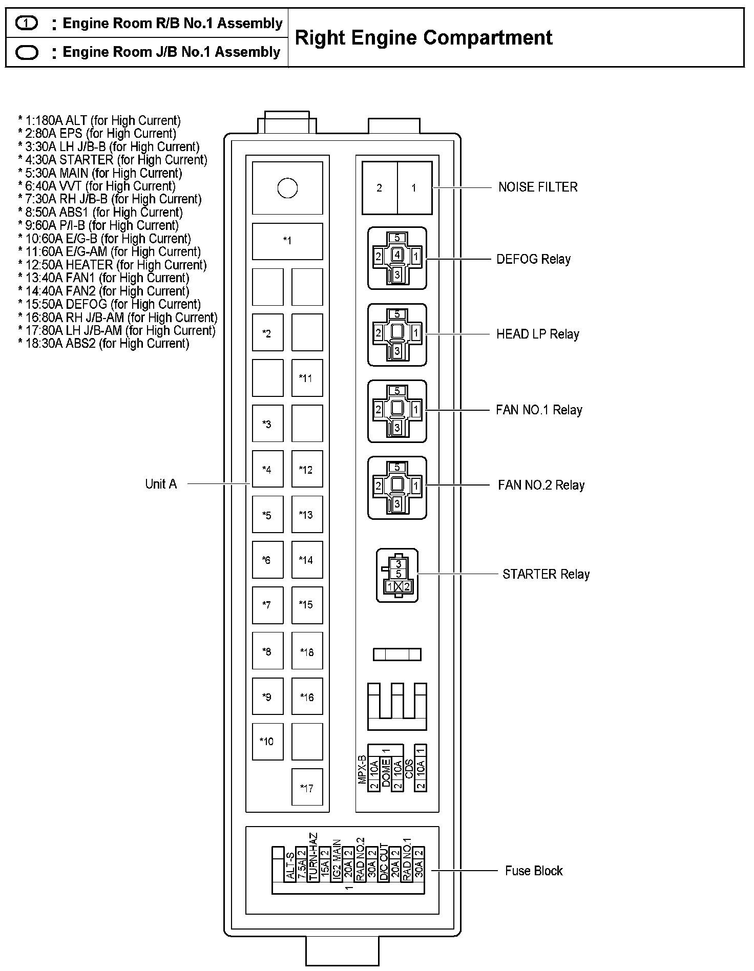 Engine Room R/B, J/B No.1 Assembly - Right Engine Compartment: