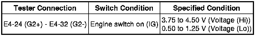 (g) While turning the crankshaft pulley by hand, measure the voltage between each terminal. Check that the voltage changes between the Hi range and Lo range shown in the table below.