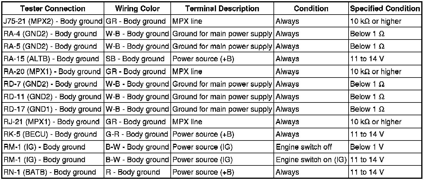 3. CHECK MAIN BODY ECU RH (COWL SIDE JUNCTION BLOCK RH)